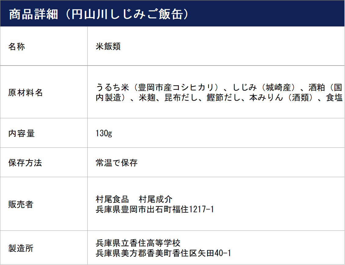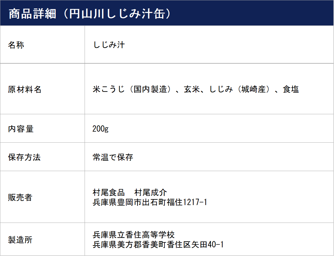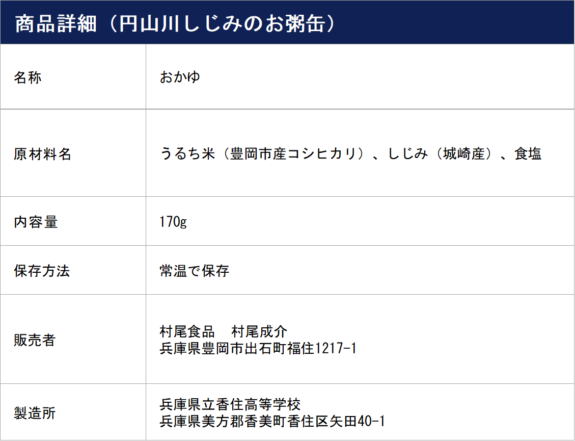 香住高校×「円山川しじみご飯缶」「円山川しじみ汁缶」「円山川しじみのお粥缶」の3種セット